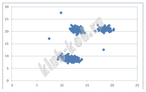 По второй диаграмме видим три кластера: Далее в текстовом файле уберем первую строку с заголовком и с помощью функции найти и заменить, изменим разделители запятые на точки.