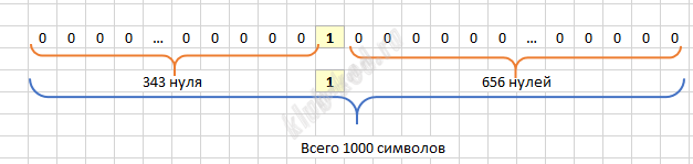 Решение и ответ Исполнитель Машина Тьюринга (МТ) двигаясь по ленте влево, заменяет все нули единицами пока не встретит 1. Когда встречает 1, то заменяет ее нулем и останавливается. Поскольку 343 нуля осталось, значит перед ними была 1, а до единицы слева заполним оставшиеся 1000 символов нулями.